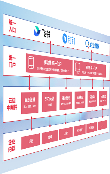 对协作平台提供支持服务,,支持企业应用与协作平台对接,,包含组织同步、、、消息集成、、、待办集成等。。。支持目前主流的协作平台:钉钉、、、企微和飞书。。
